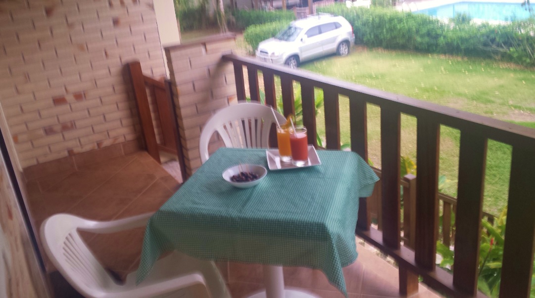 No piso térreo, possui varanda com vista para a piscina e área social, ou para o jardim. Equipada com frigobar, TV led 24", ventilador de teto, banheiro com box e ducha higiênica, mesa e banquetas.