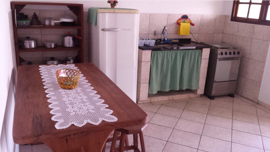 No piso superior, possui varanda privativa com vista para o mar. Equipado com cozinha completa, TV led 32",